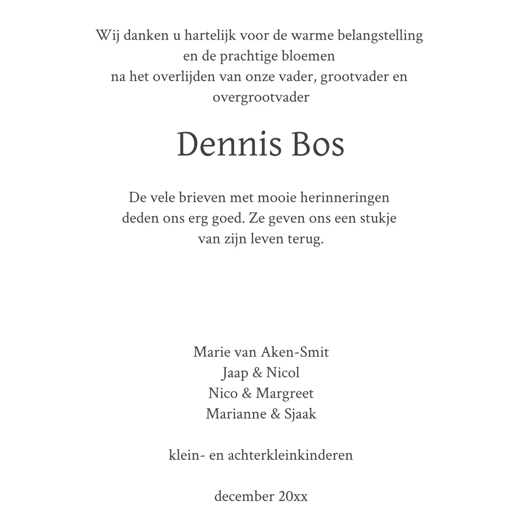 Bedankkaart met foto van enkele golven en zonlicht. De naam en een foto van de overledene op de voorzijde.