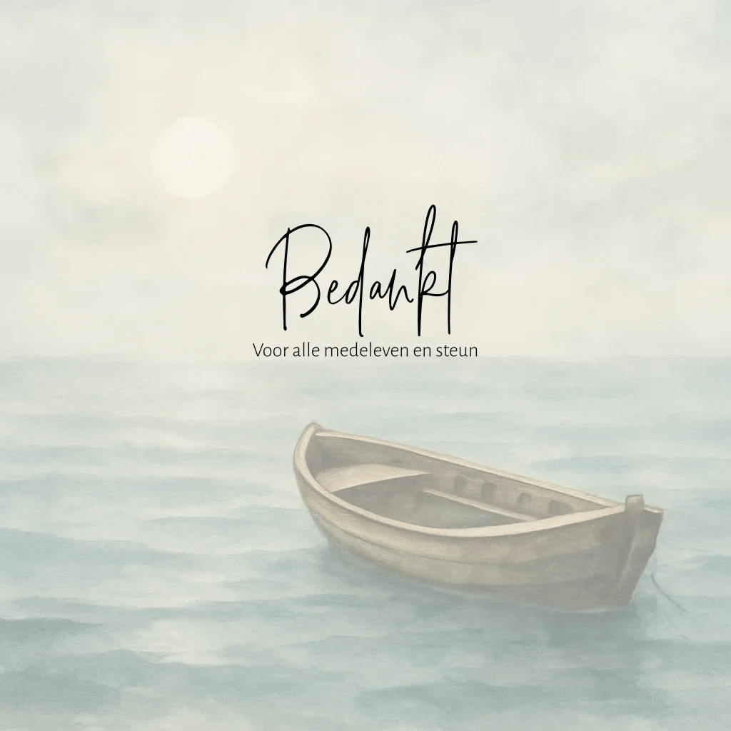 Bedankkaart met een houten bootje op zee