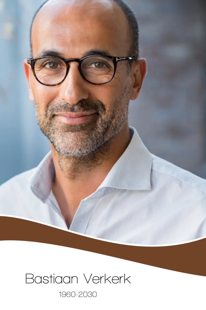 Prachtige kaart als herinnering aan de overledene. Met zowel op de voorzijde als achterzijde een portret. De kleur van de boog kan aangepast worden zodat hij mooi bij de foto past. (829)