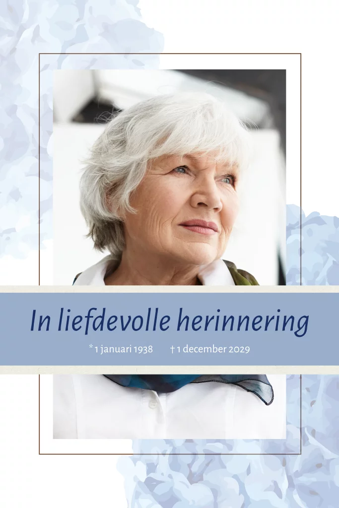 Bedankkaart met foto en blauwe paarse hortensia in aquarel. (1210)