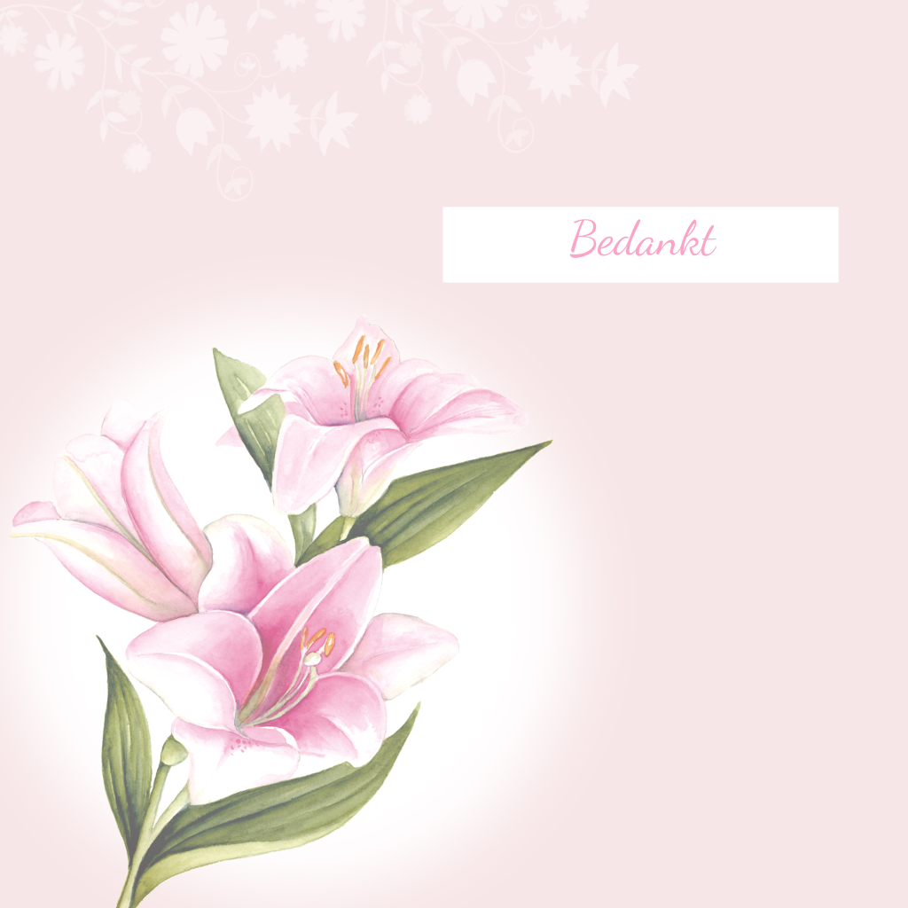 Bedankkaart met roze lelies