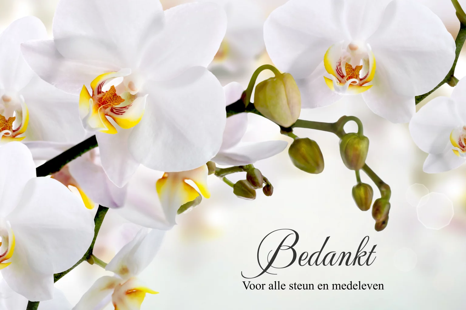 Dankbetuiging kaart na overlijden dierbare met witte orchidee. (1240)