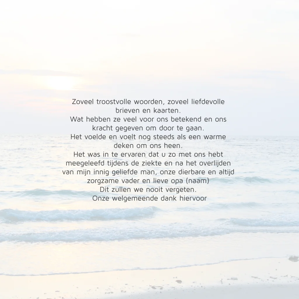 Dankbetuiging na overlijden begrafenis met de zee en het strand. (802)