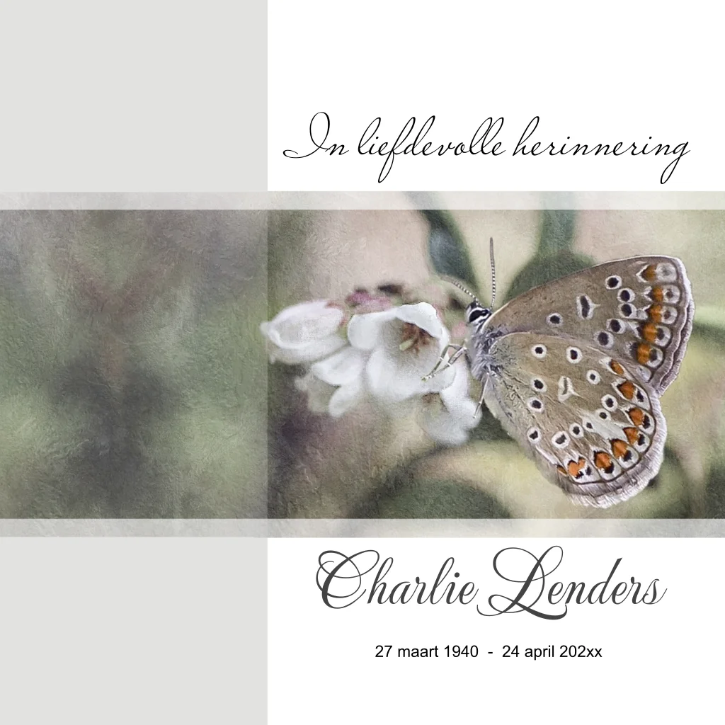 Dankbetuiging na overlijden met vlinder en witte bloem. (778)