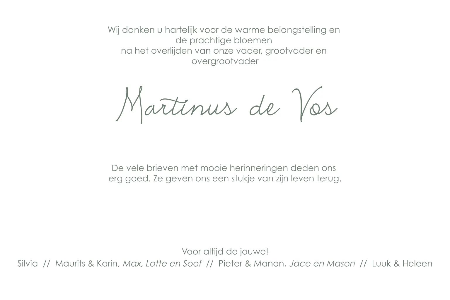 Dankbetuiging na overlijden modern met foto voor een man op de voorkant. Met paardenbloem pluisjes. (863)