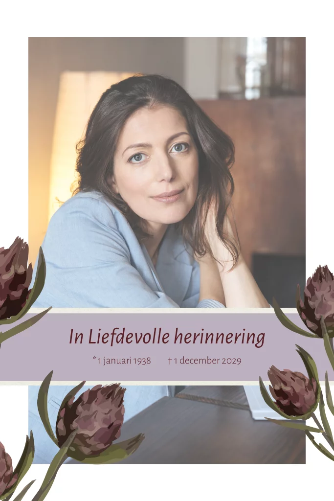 Bedankkaart rouw met takken artisjokken en ruimte voor het plaatsen van een foto. (1206)