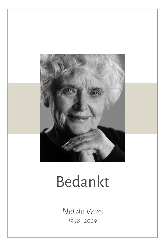 Bedankkaart voor een vrouw met rouwrand en ruimte voor een eigen foto. (1232)