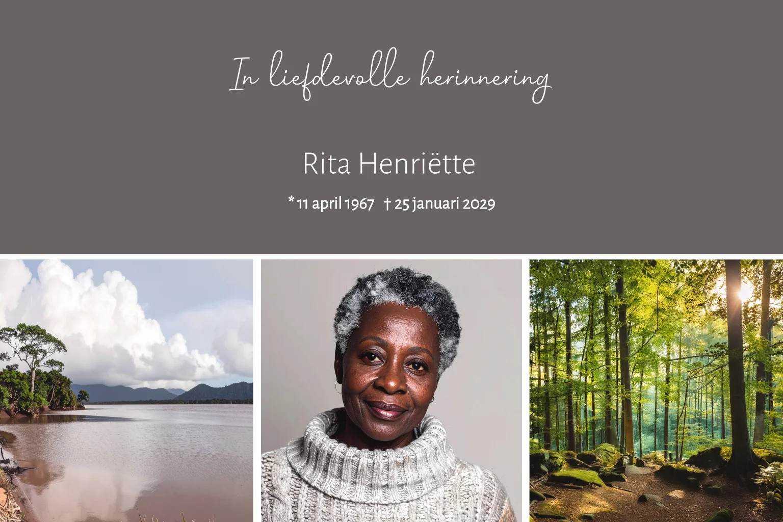 Bedankkaart na overlijden voor een vrouw met een foto collage van natuur en ruimte voor een eigen foto. (555555)