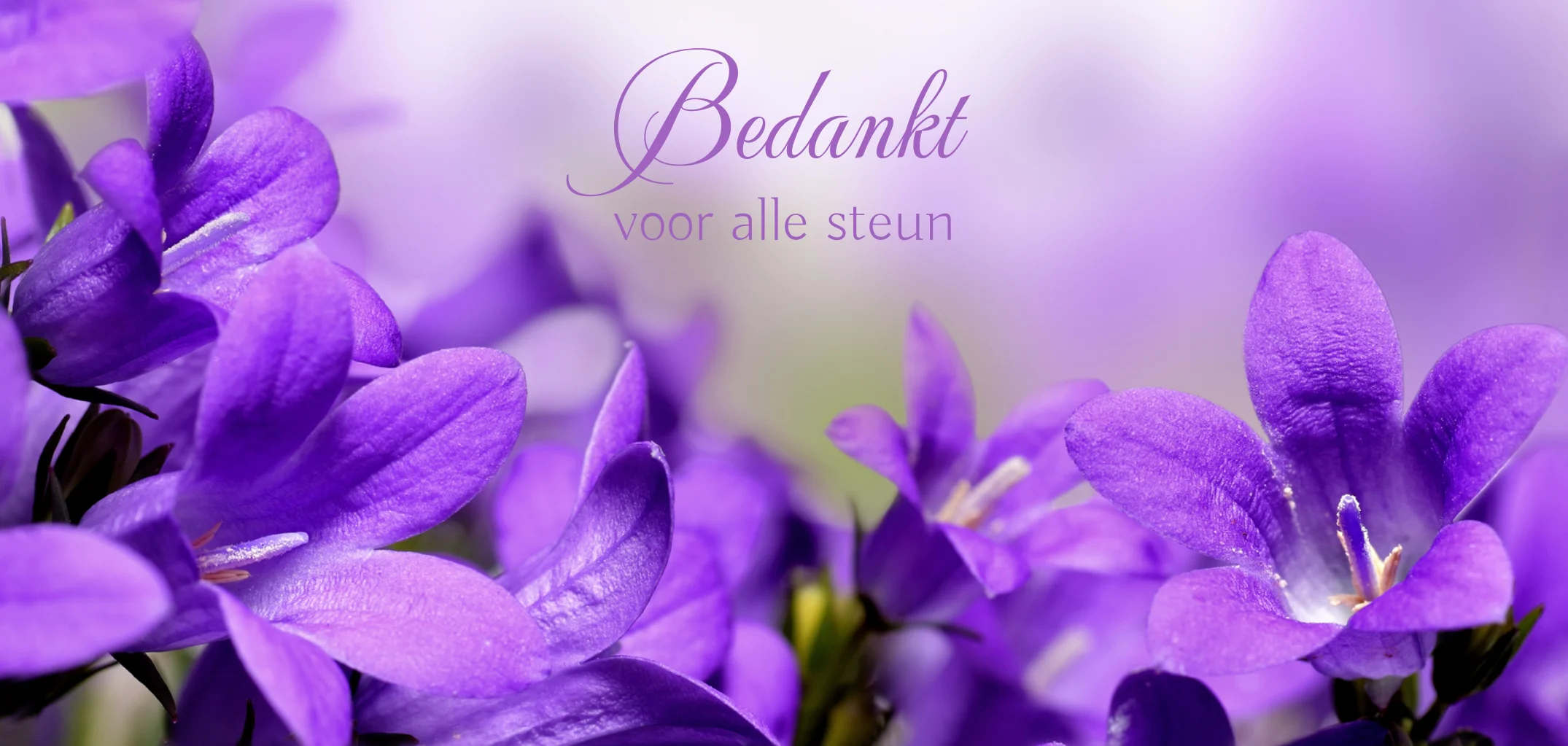 Bedankkaart na overlijden paars tinten met bloemen. (782)