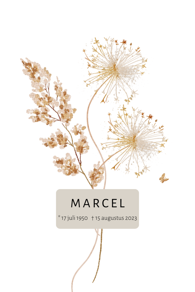 Bedankkaart na overlijden met bloemen in aarde tinten. Lettertypes en kleuren zijn naar wens aan te passen. (974)