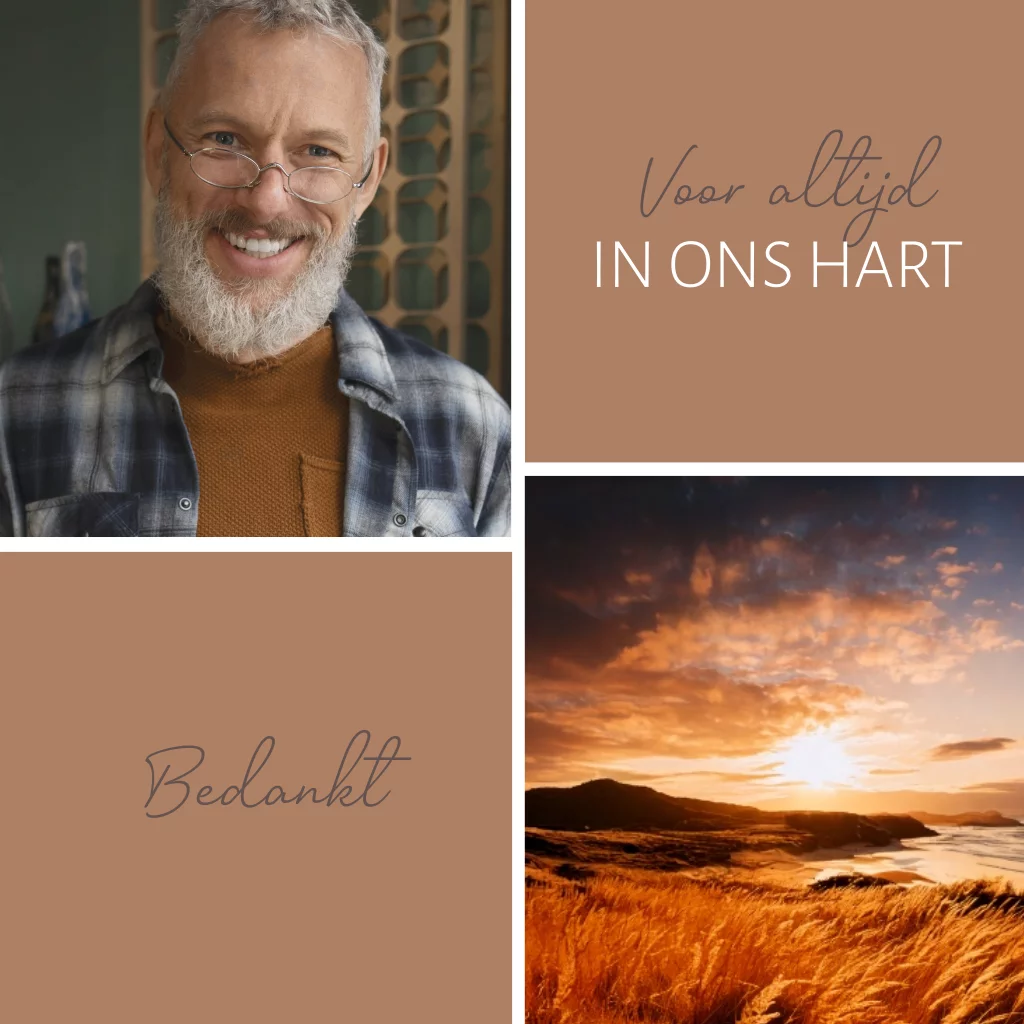 Een moderne bedankkaart voor een man met meerdere vlakken voor het plaatsen van een eigen foto. In een warme koperkleur. (1241)