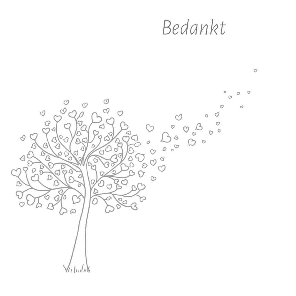 Wit bedankkaartje kind of baby mooi getekende boom met hartjes. (349)