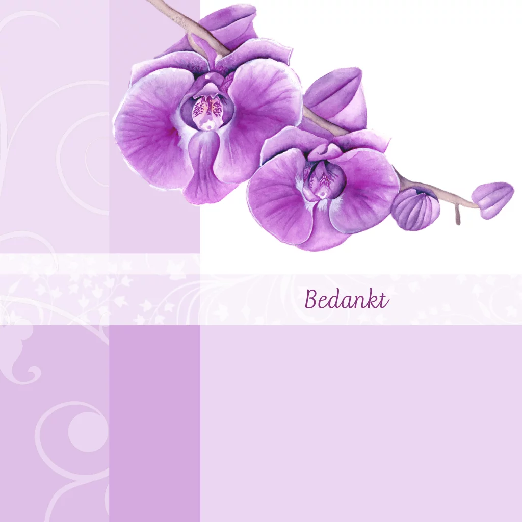 Bedankkaart na begrafenis of crematie overlijden met mooie sfeervolle orchidee in paarse tinten. (479)