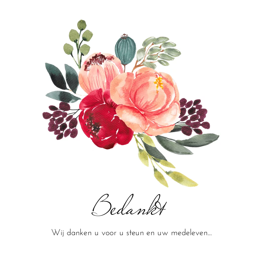 Bedankkaart met mooie geschilderde gekleurde bloemen
