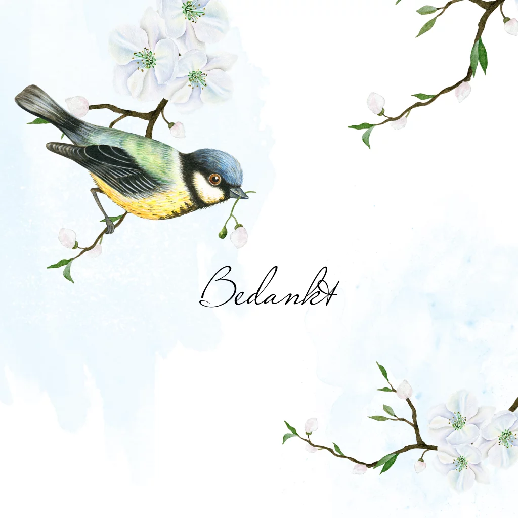 Bedankkaart witte bloesem en vogel koolmeesje (577)