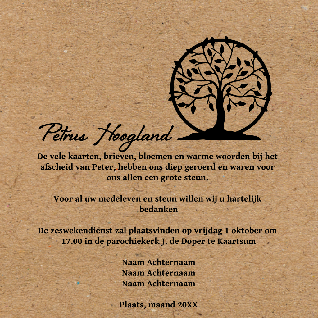 Dankbetuiging kraft met levensboom