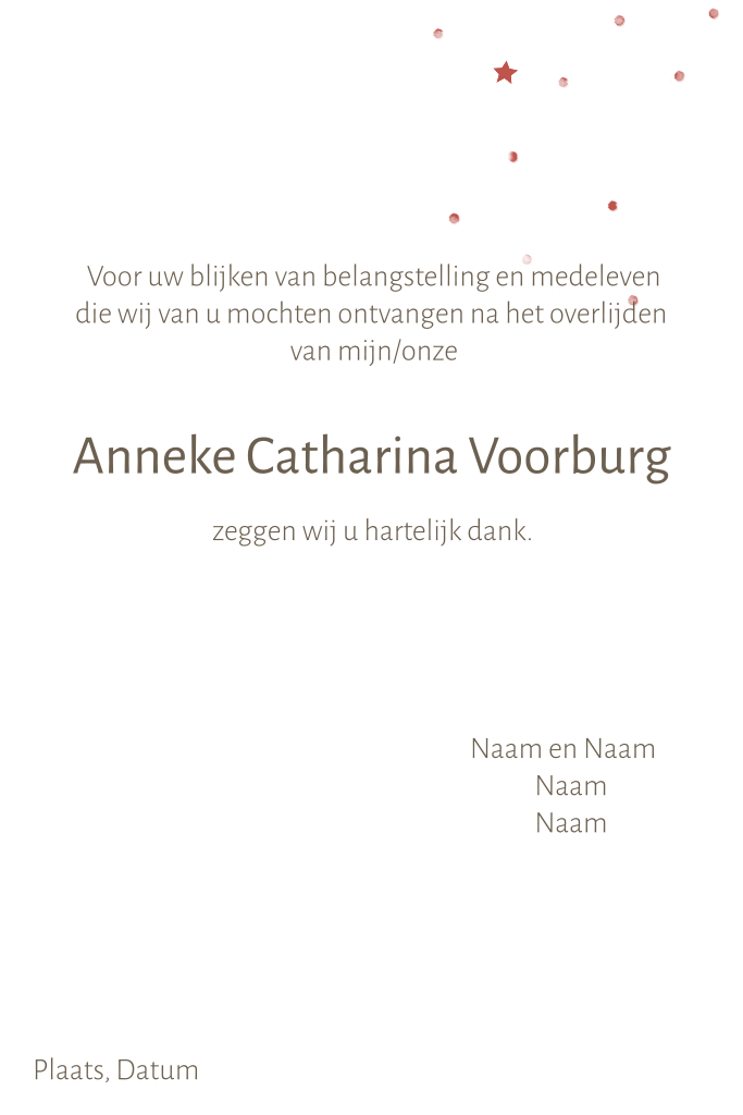 Unieke dankbetuiging wit met vallend blad en sterretjes