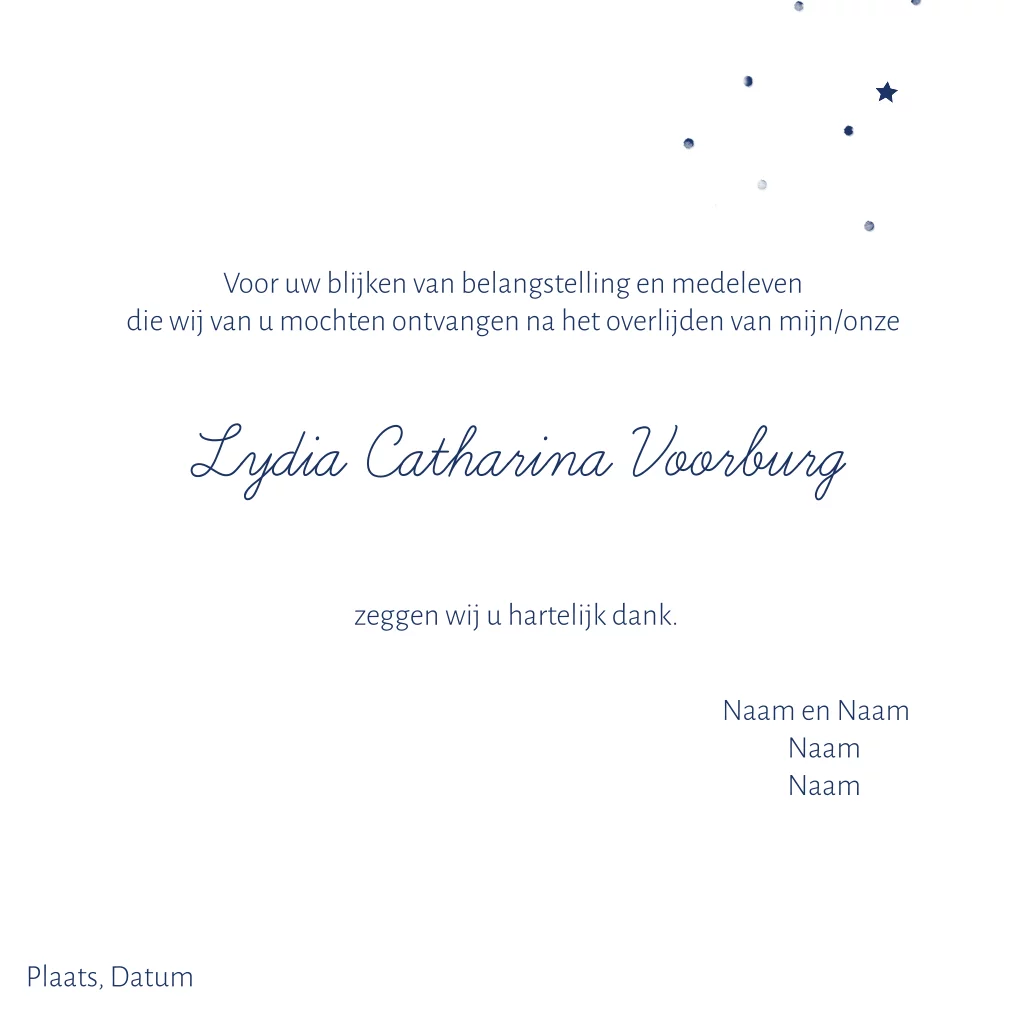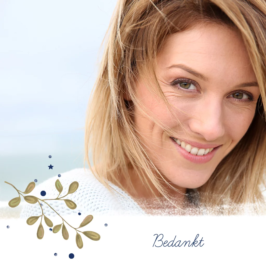 Bedankkaart modern na overlijden van een vrouw met ruimte voor het plaatsen van een eigen foto en een groen takje met blaadjes. (366)