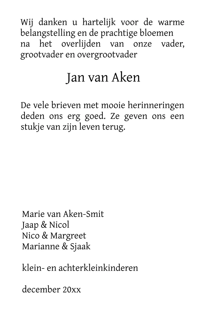 Eenvoudige bedankkaart na overlijden met ruimte voor een eigen foto (9999)