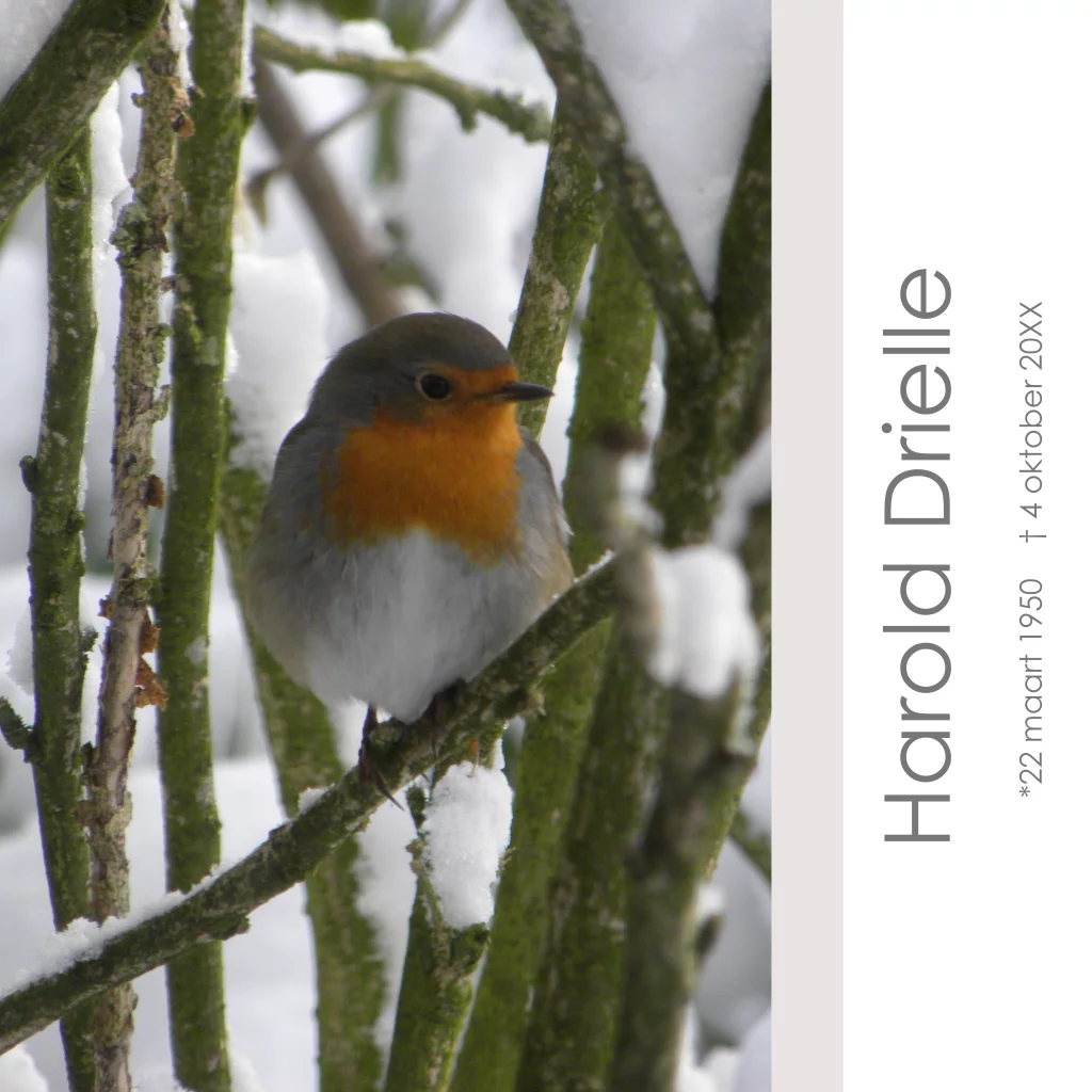 Bidprentje begrafenis roodborstje met grijze rand. (208)