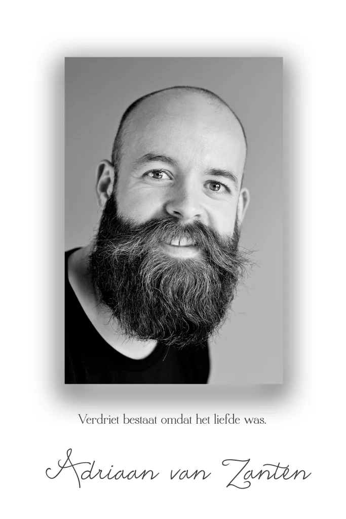 Herinneringskaart met ruimte voor een eigen foto. Door de schaduwrand rondom de foto lijkt het of deze uit de kaart komt / er bovenop ligt. Een liefdevolle herinnering aan een overleden dierbare.