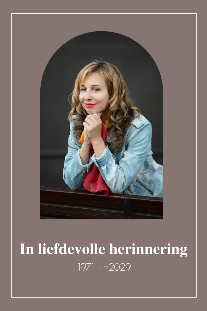 Bidprentje vrouw met fotokader in boogvorm en bruin roze achtergrond
