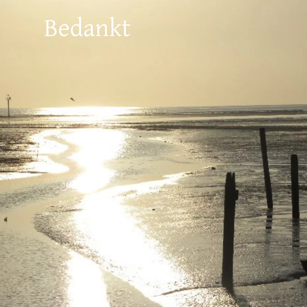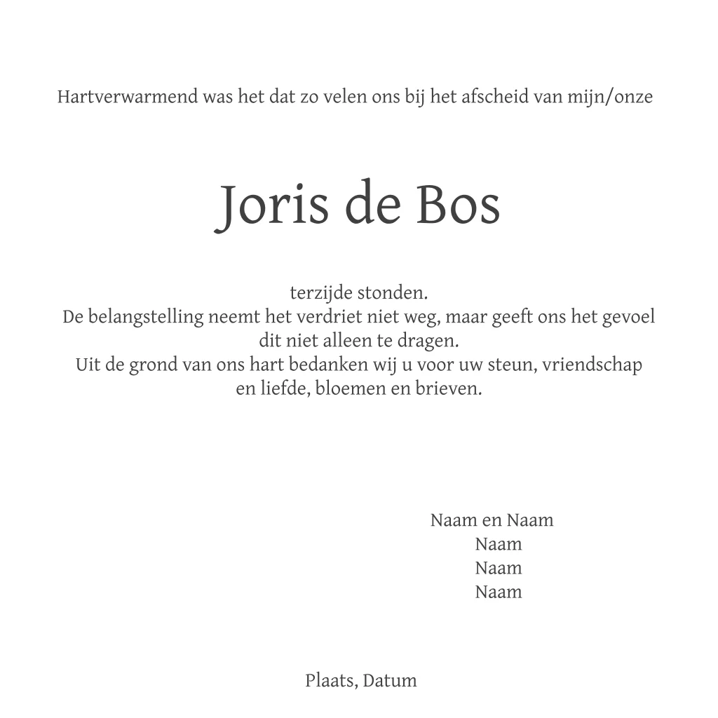 Moderne bedankkaart met foto van de ochtendzon op het strand. Met de naam van de overledene op de voorzijde.