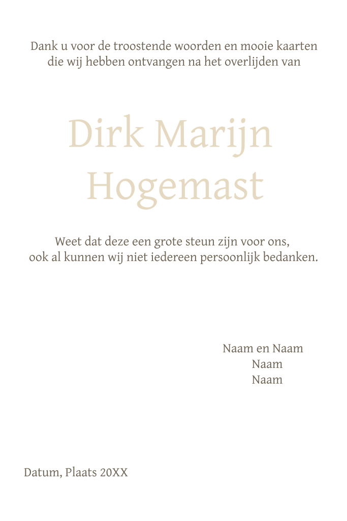 Bedankkaart na overlijden man met oude foto van vroeger en nu