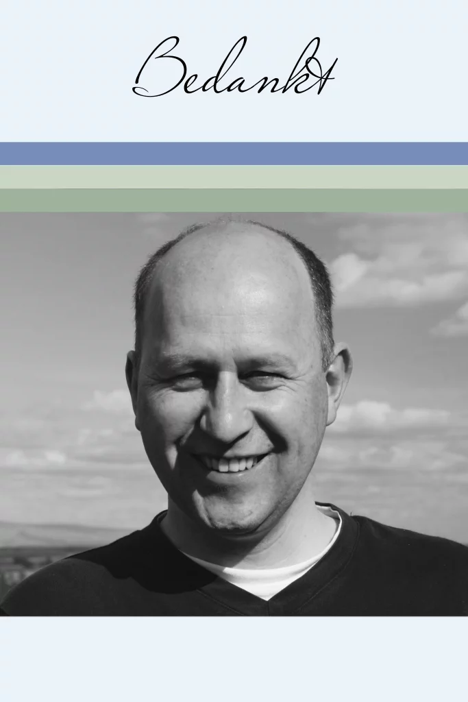 Trendy bedankkaart met foto en strepen in blauw tinten. (292)