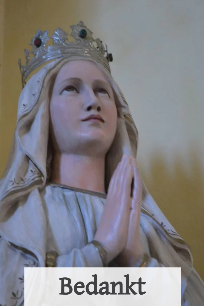 Mooie bedankkaart met foto van mariabeeld. De naam van de overledene op de voorzijde.
