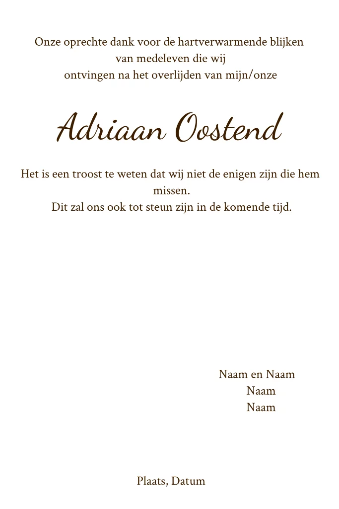 Mooie dankbetuiging met foto van zonsondergang op zee bij IJmuiden. De naam van de overledene op de voorzijde.