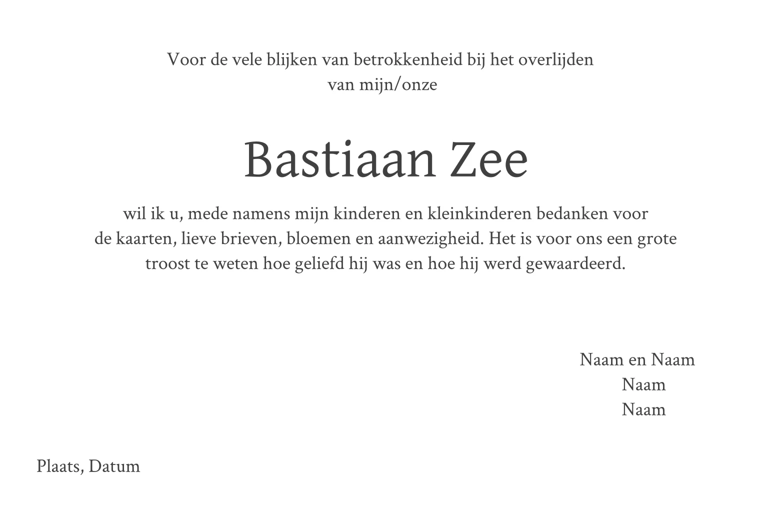 Mooie bedankkaart met foto van bevroren spinnenweb in tuin. De naam van de overledene op de voorzijde.
