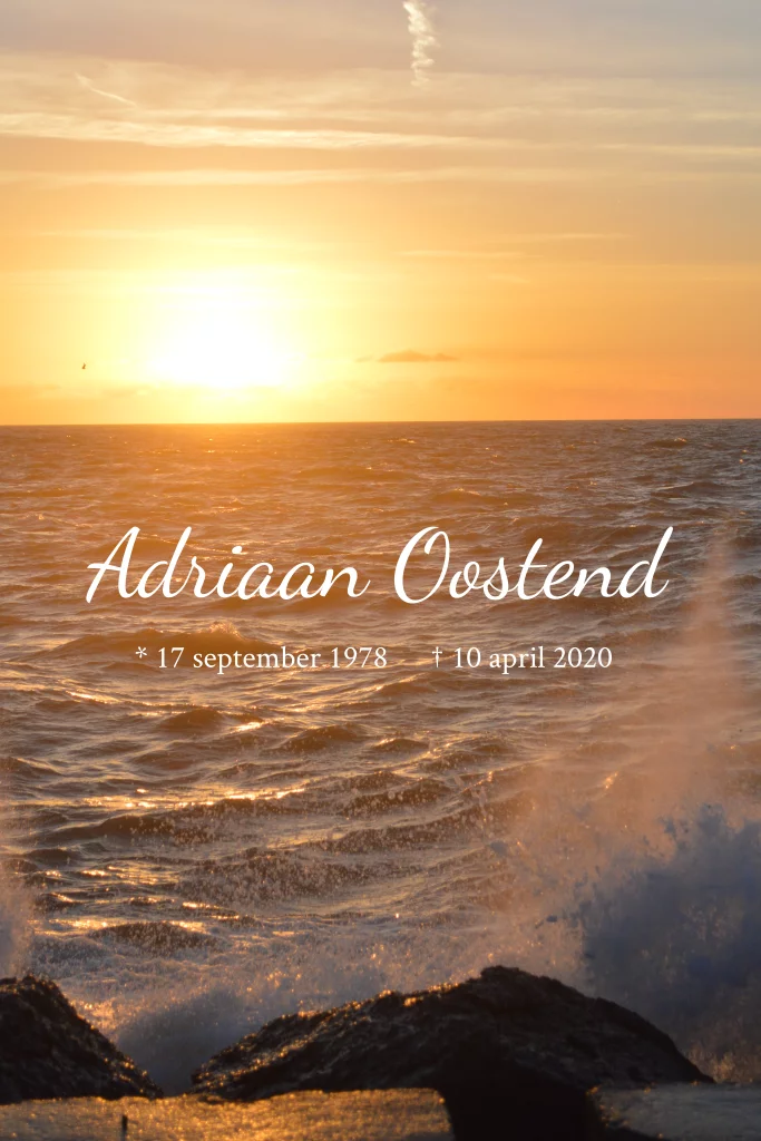 Mooie herinneringskaart met foto van zonsondergang op zee bij IJmuiden. De naam van de overledene op de voorzijde.