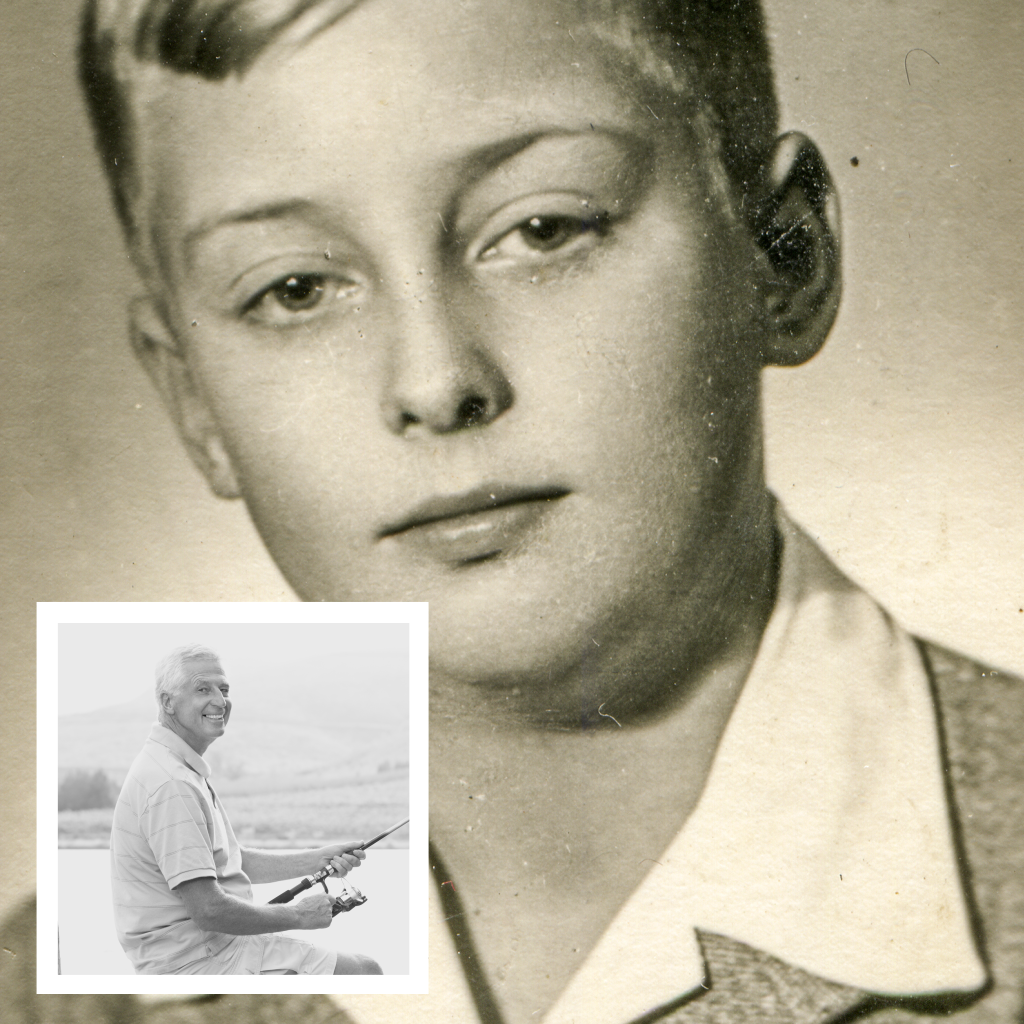Mooie stijlvolle oude bedankkaart met foto van vroeger en nu. Plaats uw eigen foto's. (69)