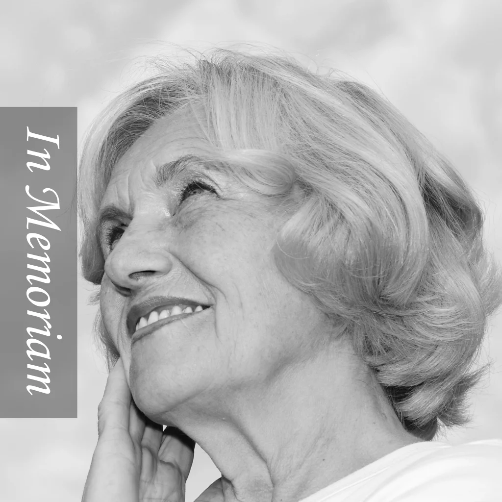 Stijlvolle herinneringskaart of overlijdensbericht in grijstinten. Plaats uw eigen foto. Tekst In memoriam kan verplaatst worden.