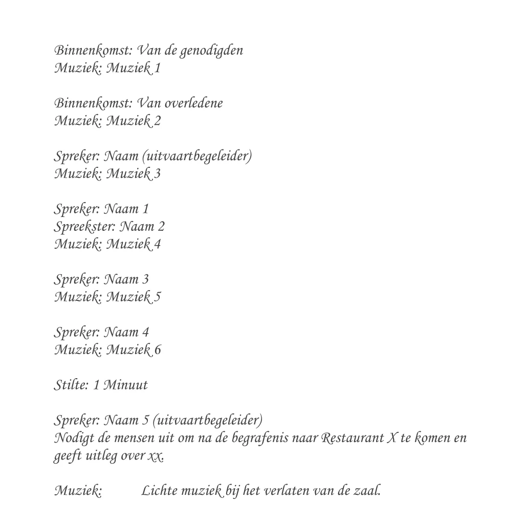 Programmakaart uitvaart in grijstinten. Plaats uw eigen foto. Tekst In memoriam kan verplaatst worden.