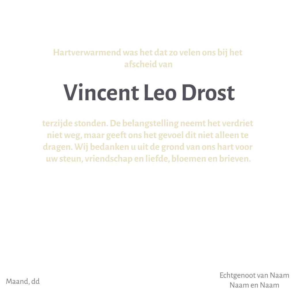 Dankbetuiging begrafenis stijlvol ontwerp met foto. In geel en grijs. (288)