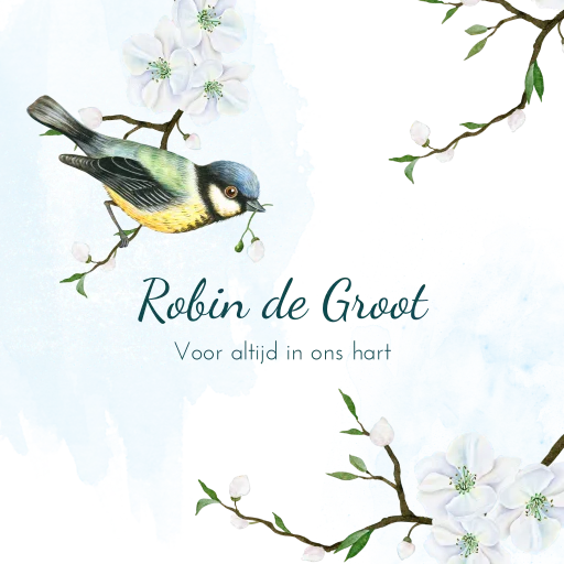 Tegel herinnering overledene met koolmeesje en bloesem