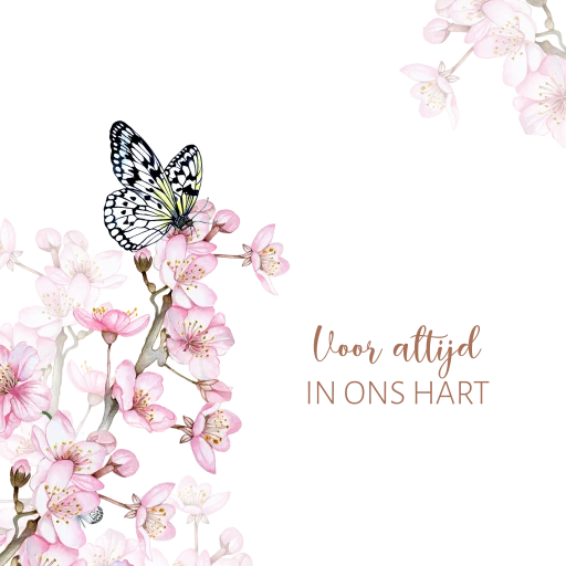 Herinneringstegel vrouw, oma, zus, moeder met bloesem , licht roze / roze bloemen en een mooie vlinder op een takje. (757)