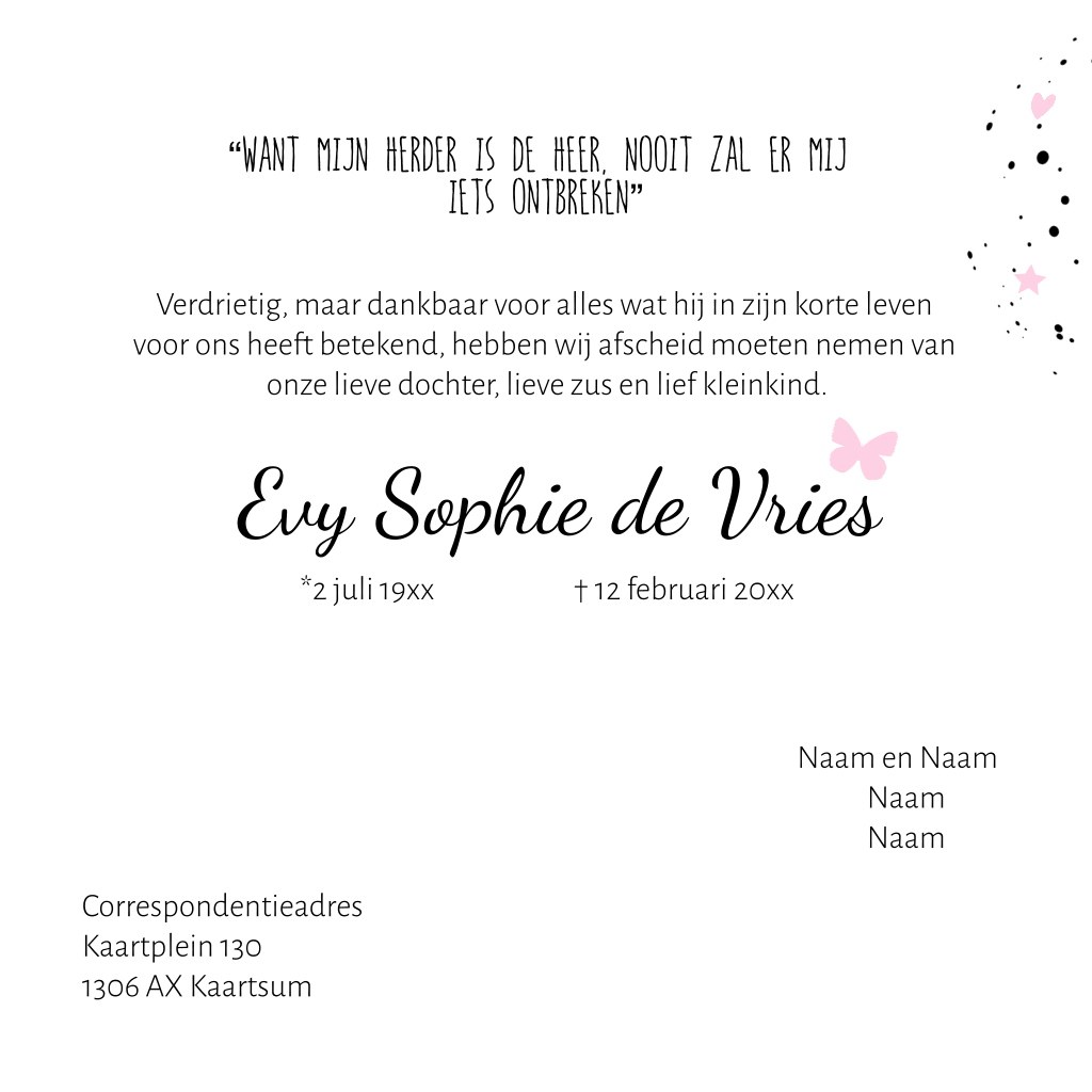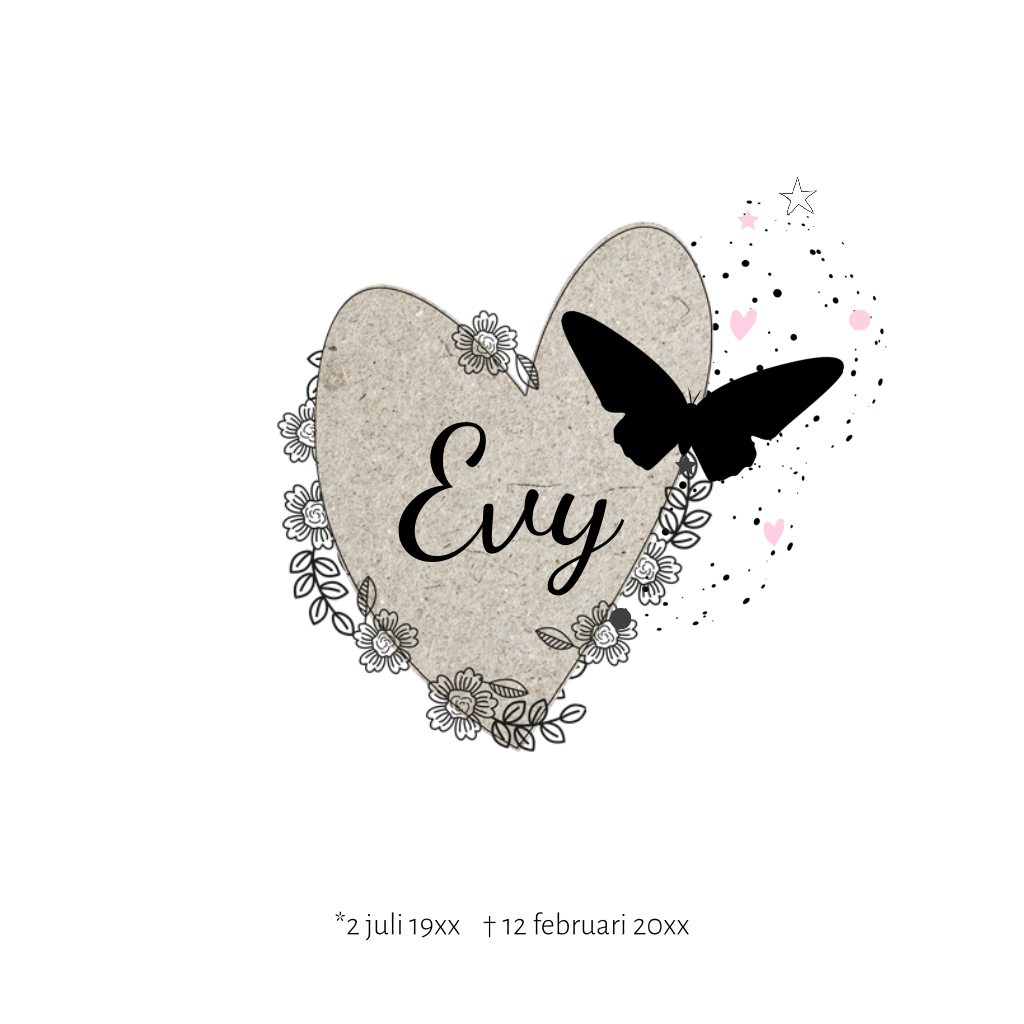Lieve rouwkaart baby meisje met karton hart en vlinder