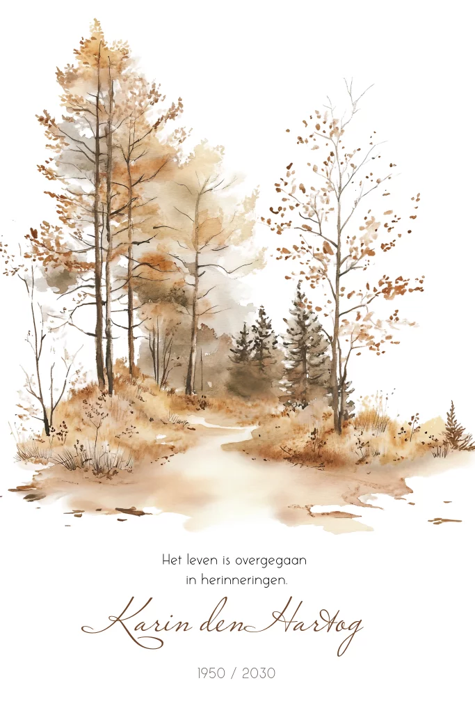 Bomen rouwkaart met hand geschilderde landschap herfst