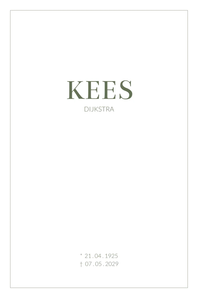 Minimalistische staande rouwkaart met rouwrand in donkergroen
