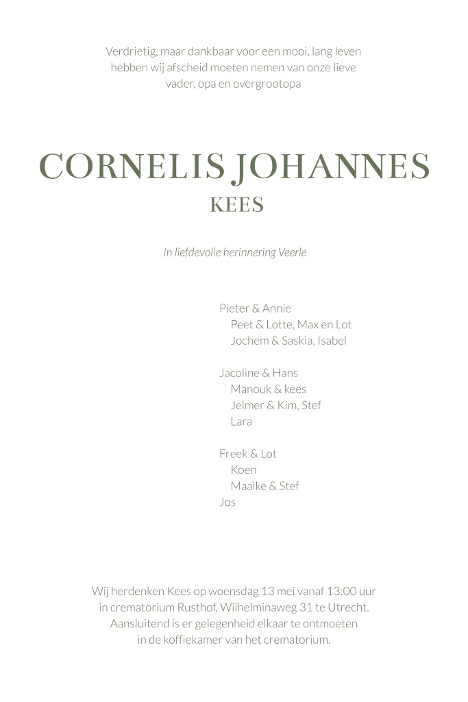 Deze rouwkaart kan je zelf heel eenvoudig aanpassen en ontwerpen in de online ontwerp editor. (997) TIP: Bekijk onze ruime collectie rouwkaarten via > Rouwkaarten