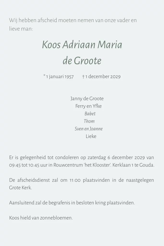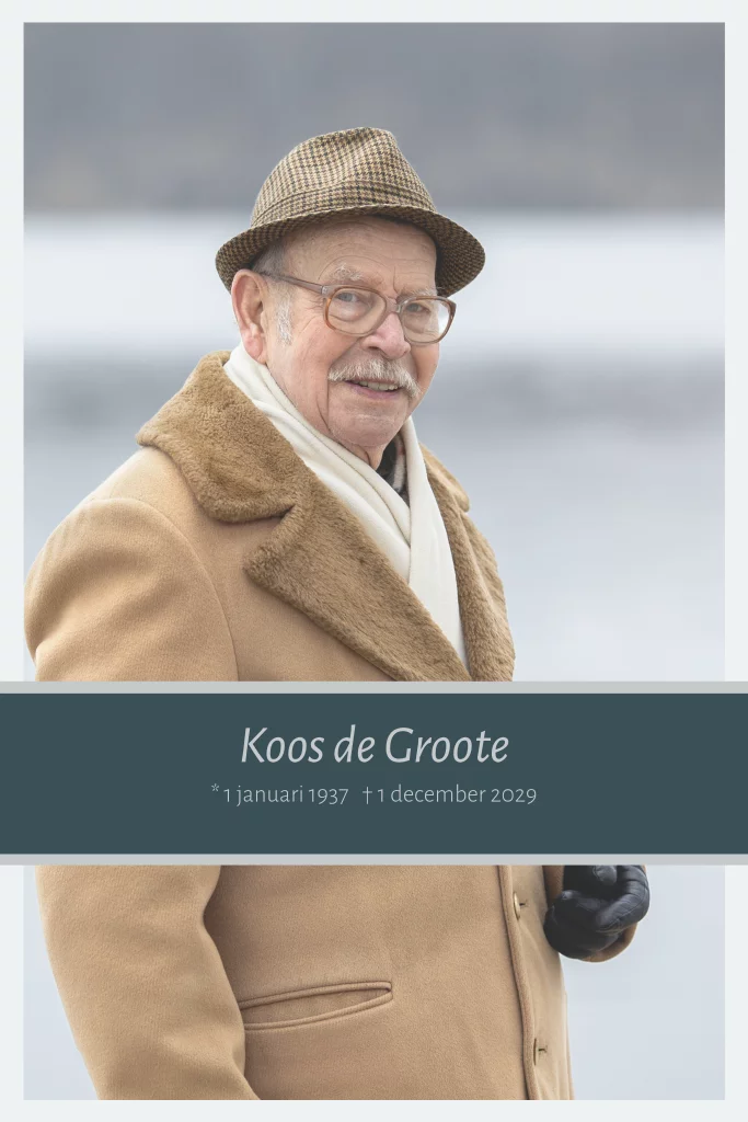 Een foto rouwkaart met blauwe kleuren. Kleuren zijn naar eigen smaak aan te passen. (1198)