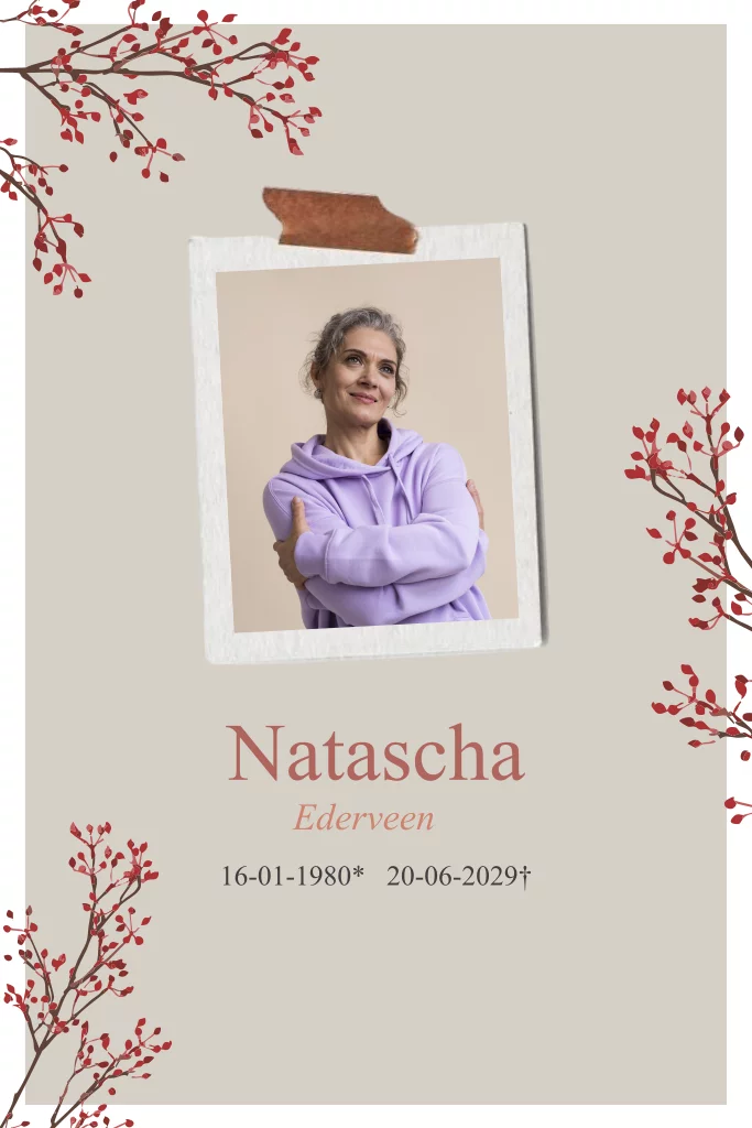 Rouwkaart met getekende takken en ruimte voor een foto. (1203)