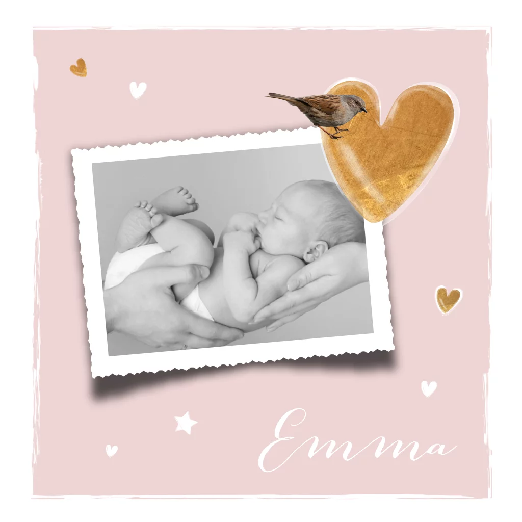Rouwkaart kind meisje met hartje en vogeltje. (1073)