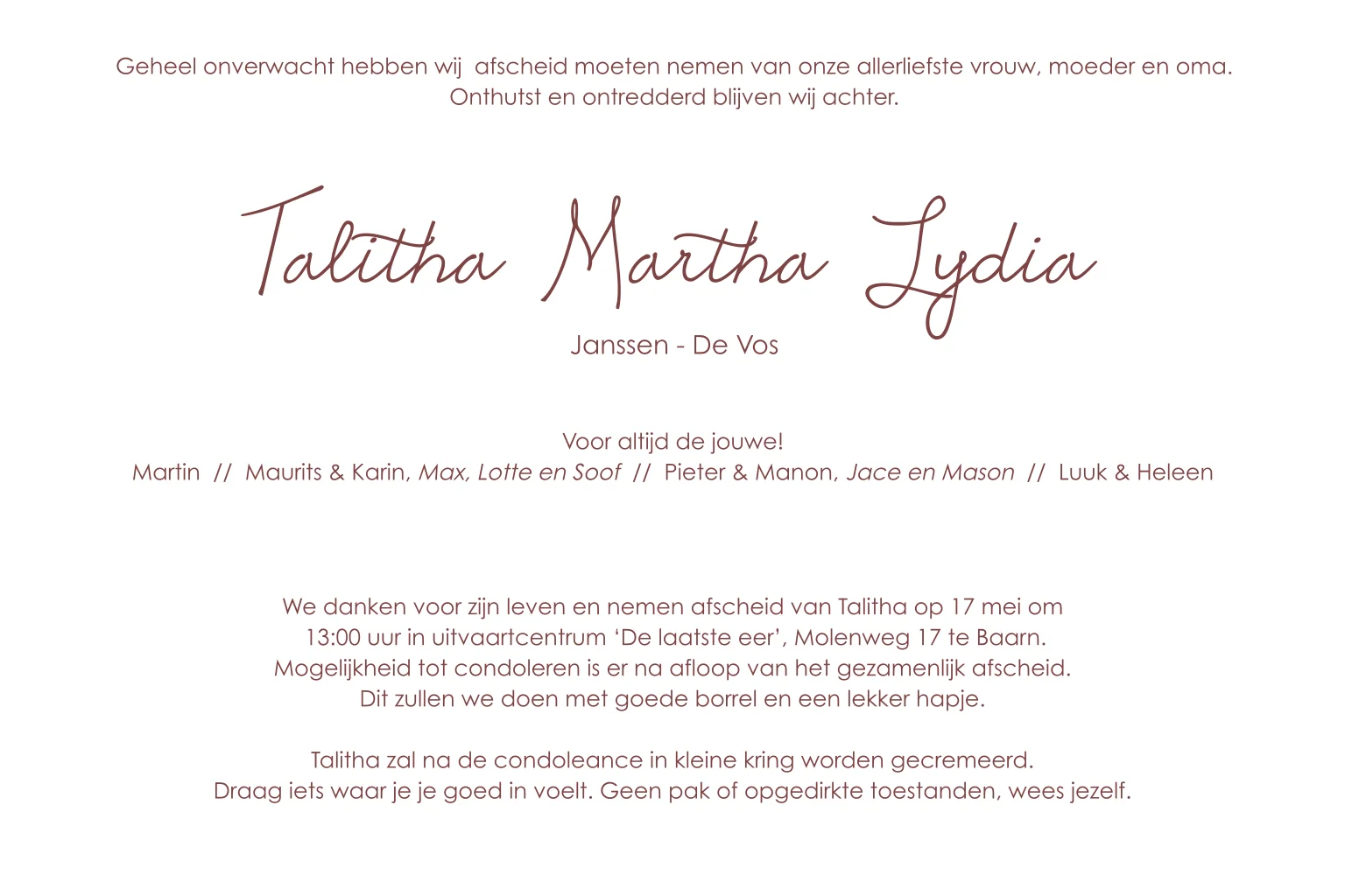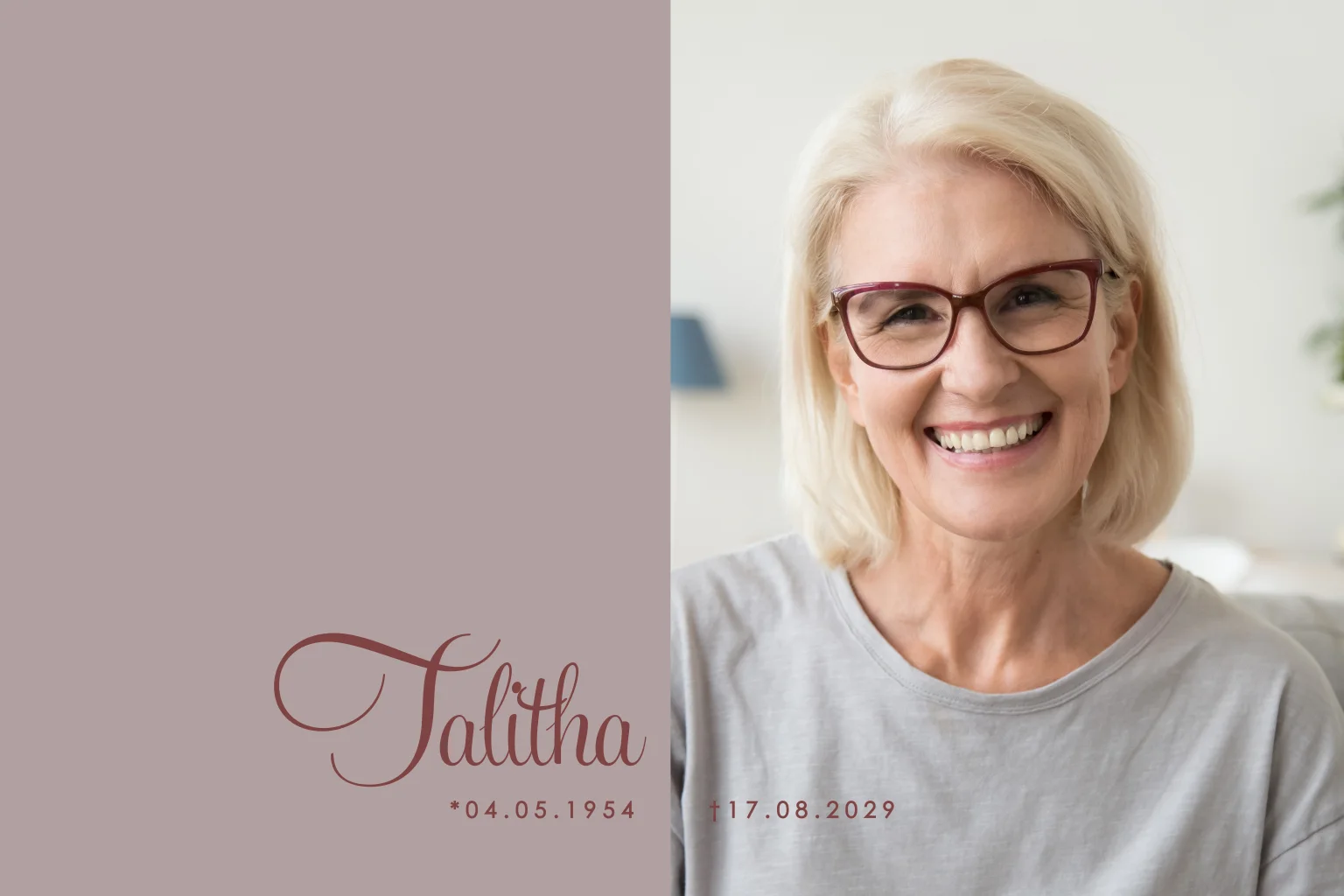 Liggend dubbele rouwkaart met foto voor een vrouw