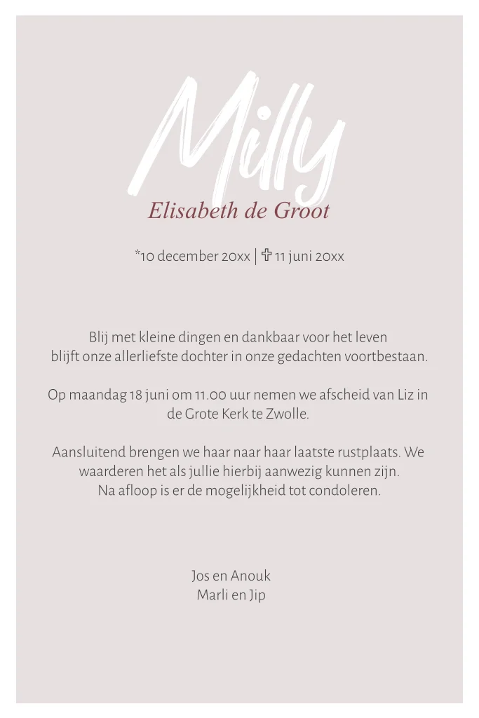Modern rouwkaartje voor een baby/kind met ruimte voor het plaatsen van een eigen foto. (555555)