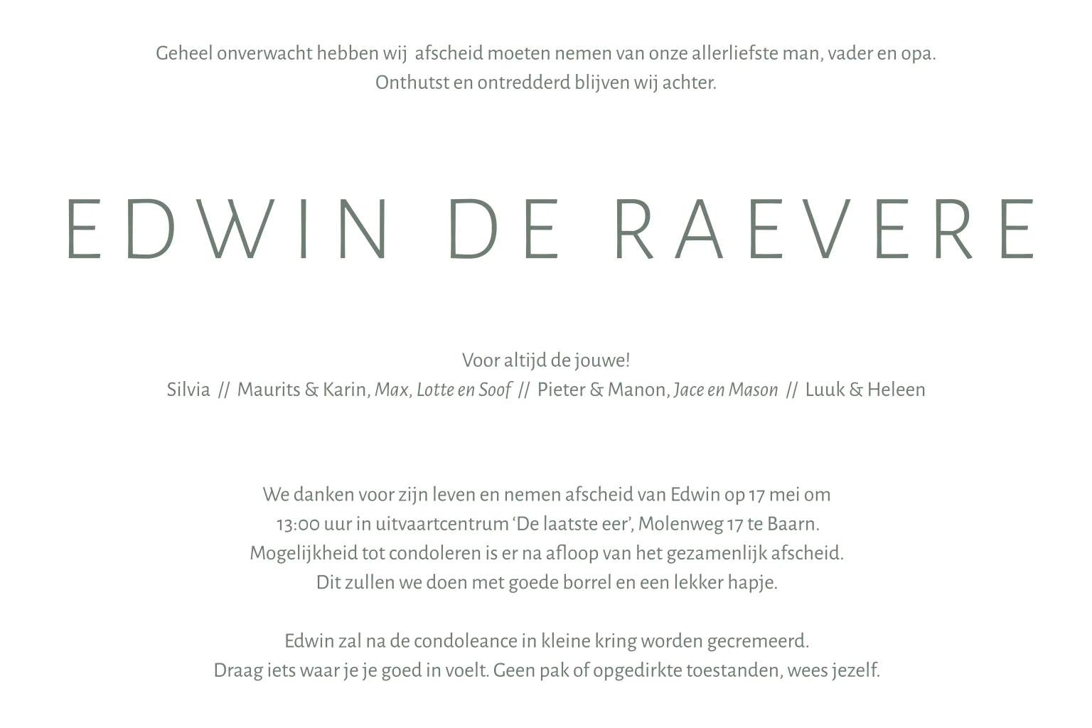 Moderne dubbele rouwkaart met rouwrand en oudgroene achtergrond
