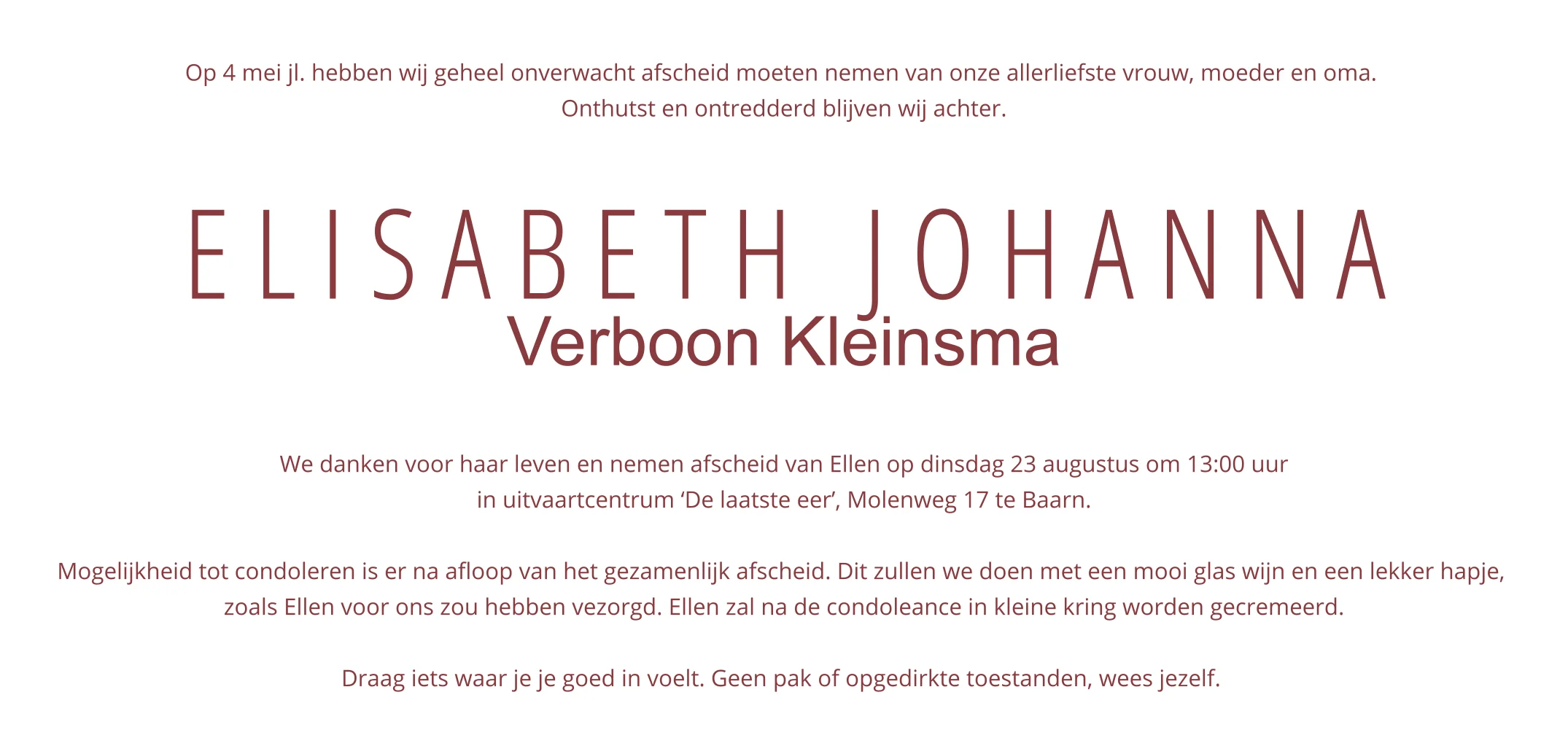 Pas deze eigentijdse rouwkaart zelf aan in de editor. Vervang de voorbeeldfoto voor een eigen foto en pas de kleur daarop aan. (1003)